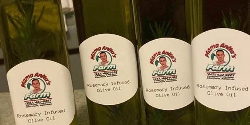 Small-batch olive oil infused with fresh rosemary grown at Mama Anita’s Farm.